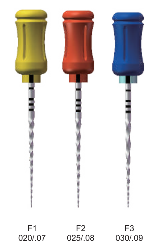 • Shape the apical 1/3 with finisher (F1, F2). If necessary, proceed to F3,